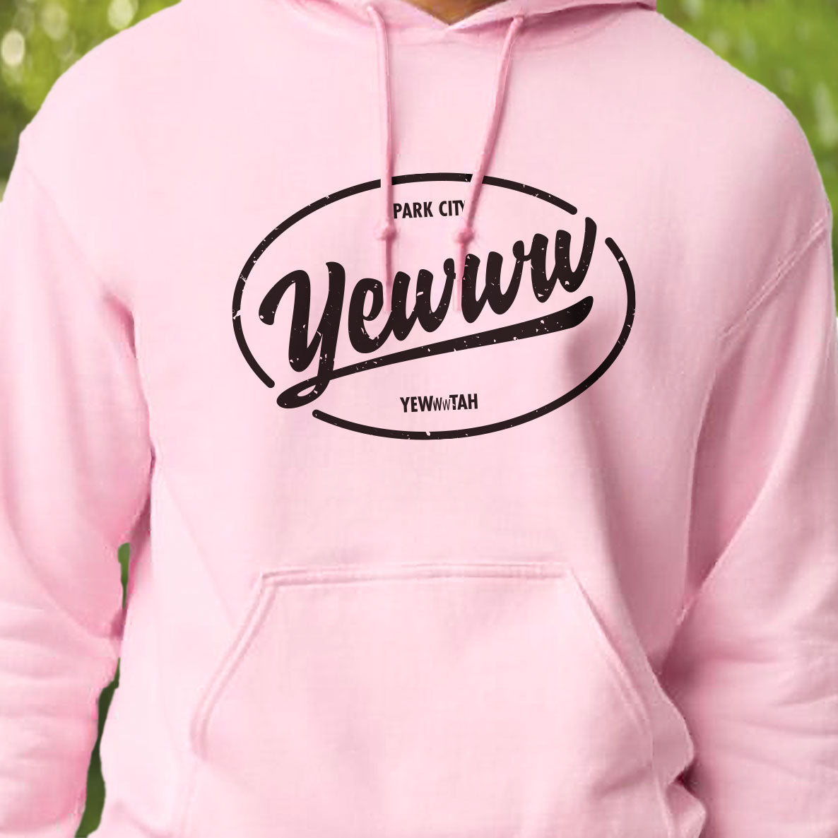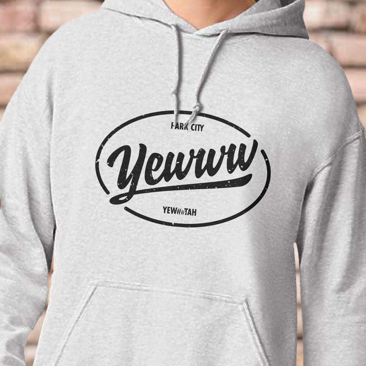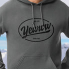 The Oval Yewww hoodie takes the familiar “location sticker” design and gives it an unmistakable Yewwwtah twist. Yewww have reached your destination.