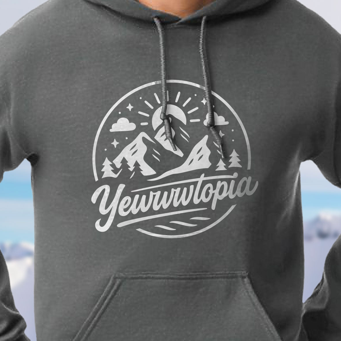 Welcome to Yewwwtopia — the legendary land where stoke never sleeps, powder falls on command, and the vibe is always high. This hoodie pays tribute to the birthplace of Yewww himself.