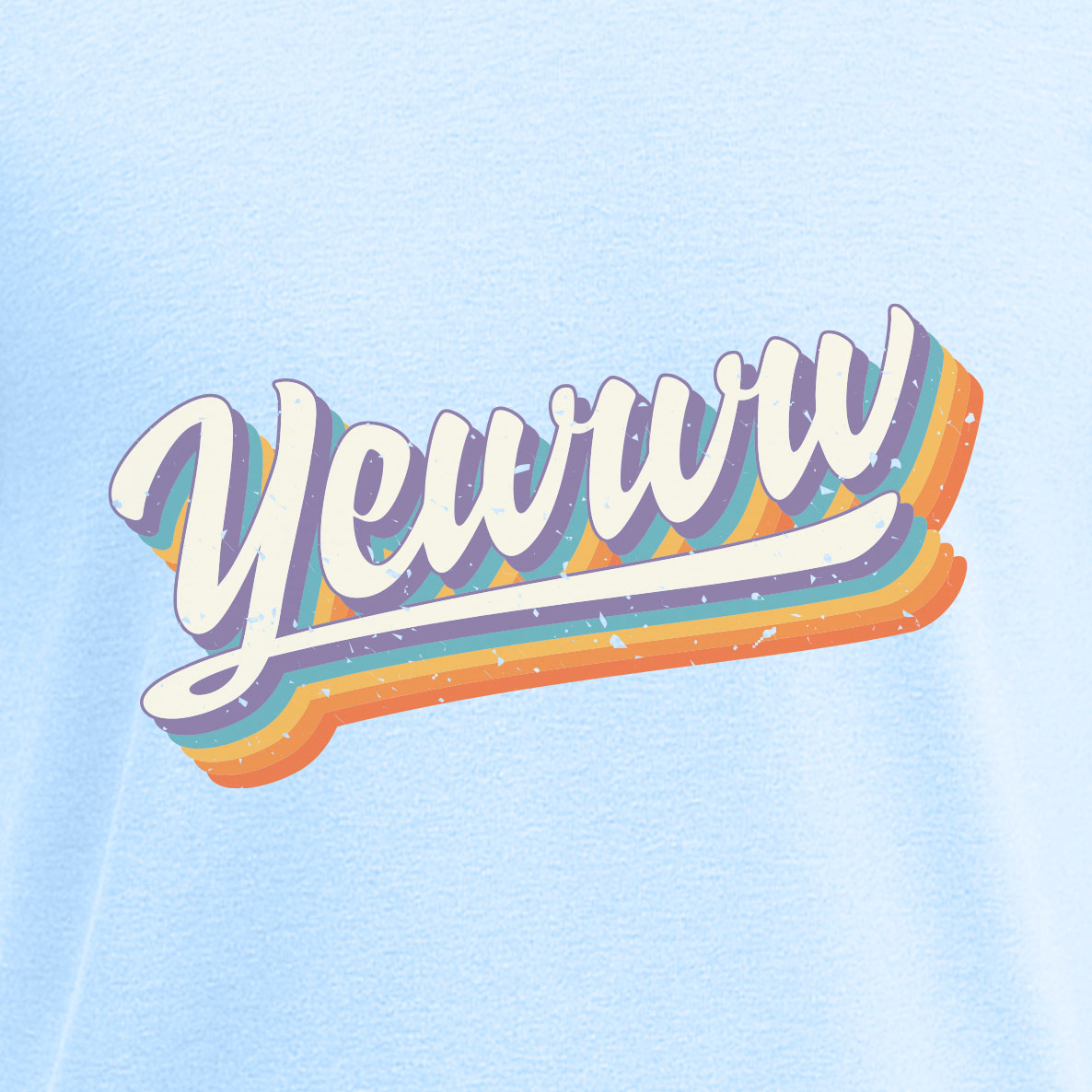 The Rainbow Yewww tee is a throwback to simpler times — when the sun hit just right, the trail dust hung in the air, and the day had no end in sight.